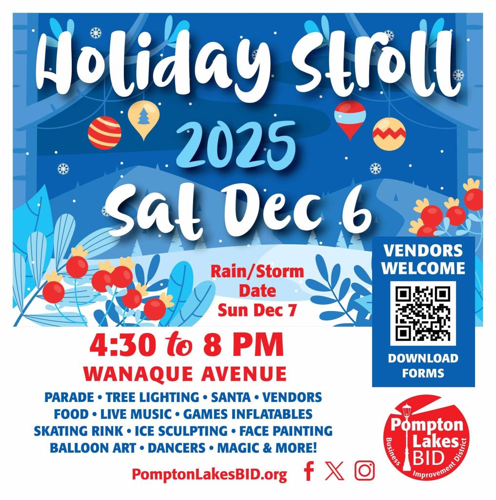 Holiday Stroll 2025 | Sat, 12/6 4:30-8pm Wanaque Avenue